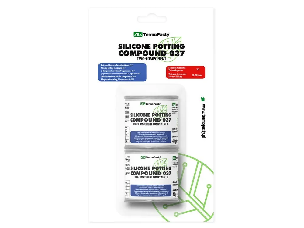 A 037-es kétkomponensű szilikon öntözőanyag az adalékanyagrendszeren belül. A szilikon gél kristálytiszta és UV-ellenálló. A töltőkeverék tökéletesen védi az elektronikát a kedvezőtlen környezeti hatásoktól, és védi az érzékeny modulokat a rezgésekkel szemben. Az anyag megvédielektronikai és távközlési rendszereket a környezettel szemben, és merevítésre és rögzítésre szolgál. A térhálósodási idő lerövidíthető magasabb hőmérséklet (6h ~ 70°C) alkalmazásával. Eredeti lezárt csomagolásban, 5-25°C közötti hőmérsékleten tárolja.