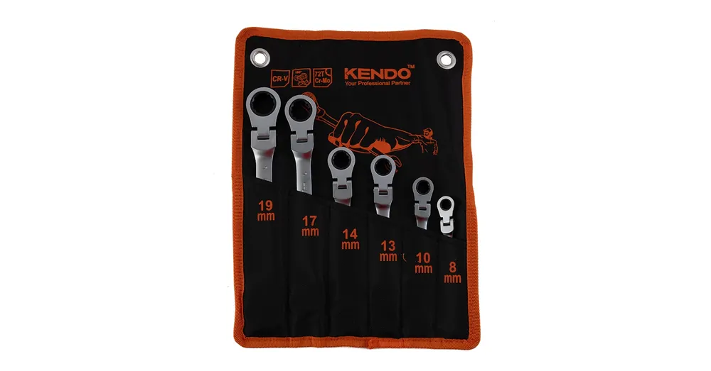 • Racsnis villáskulcs készlet 6 méretben: 8;10;13;14;17;19mm • 72 fogas racsnis fej a precíz és szűk helyeken való munkavégzéshez • 180°-ban hajlítható csuklós racsnis fej – maximális rugalmasság • Tartós króm-vanádium acélból (Cr-V), racsni Cr-Mo erősítéssel • Szatén krómozott felület a korrózióállóságért és letisztult megjelenésért • Tárolás, tartós gyöngyvászon táskában