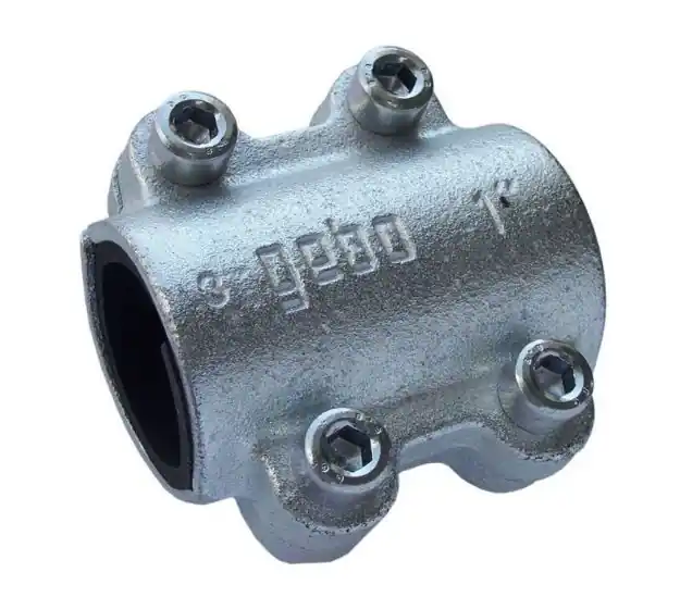 Gebo Quick DSK tömítőbilincs 1″ csövekhezVasöntvény tömítőbilincsekDSK A tömítőbilincsek a csöveken lévő korrózió vagy mechanikai igénybevétel által okozott lyukadások, repedések és porozitások tömítésére alkalmasak.Acélcsövekhez: DIN EN 10255 (azelőtt DIN 2440/2441), DIN 2442 és DIN 2448/DIN2458 – 1 széria, ISO 65Üzemi nyomás: Víz: NNy16Engedély: Víz: ÉME A-821/1995; ÁNTSZ OTH-17-47/2005Felső öntvényelem, tömítőmandzsetta, alsó öntvényelem, csavar, csőA szerelés lépései:1. Eltávolítjuk a szennyeződéseket, rozsdát a cső sérült részéről.2. Rátesszük a hosszában felhasított tömítőmandzsettát.3. A tömítőmandzsettát úgy helyezzük a hibás csőrészre, hogy a hasíték a legmesszebb legyen a csőhiba helyétől.4. A gumimandzsettához hozzáfogjuk az alsó öntvényelemet.5. A gumimandzsettára ráhelyezzük a felső öntvényelemet.6. A csavarokat behelyezzük és behajtjuk.7. A csavarokat a megfelelő méretű imbuszkulccsal átlósan meghúzzuk.Tipikus felhasználási területek: A vízvezetékeken mechanikai igénybevételek nyomán keletkezett lyukak tömítése.A vízvezetékeken korrózió nyomán keletkezett lyukak tömítése.A sűrített levegő vezetékeinek ideiglenes tömítése.A vízvezetékek elfagyása nyomán keletkezett repedések tömítése.