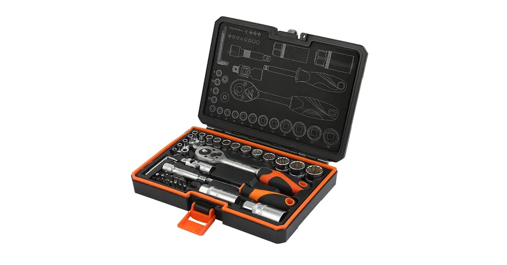 • A 45 részes, KENDO 1/4″ + 3/8″ dugókulcs készlet minden alapvető szerszámot tartalmaz, ami a ház körüli munkákhoz szükséges• A króm-vanádium ötvözetű acélból kialakított szerszámok erősek és strapabíróak• A műanyag tároló doboz jól védi a szerszámokat, a szerszámok praktikusan tárolhatók és könnyen szállíthatók benne