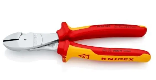 Knipex Erő-kímélő oldalcsípőfogó, szigetelt, 200mmA legkeményebb, tartós igénybevételhezNagy vágóteljesítmény kisebb erőkifejtés mellett a vágóél hajlásszögeés az áttételi arány optimális összehangolásával és a fogantyú ergonómiai kialakításávalMinden huzalfajta precíziós vágása (vágóél-keménység kb. 64 HRC), a zongorahuzalt is beleértveFogó és a fej krómozottFogantyúk többkomponensű burkolattal szigetelt, VDE-típusengedélyKözépkemény huzal vágási méret :Ø 4,2 mmSchneidwerte harter Draht (Durchmesser) :Ø 3,0 mmZongorahúr vágási méret :Ø 2,5 mmMéretek: 200 x 56 x 26 mm