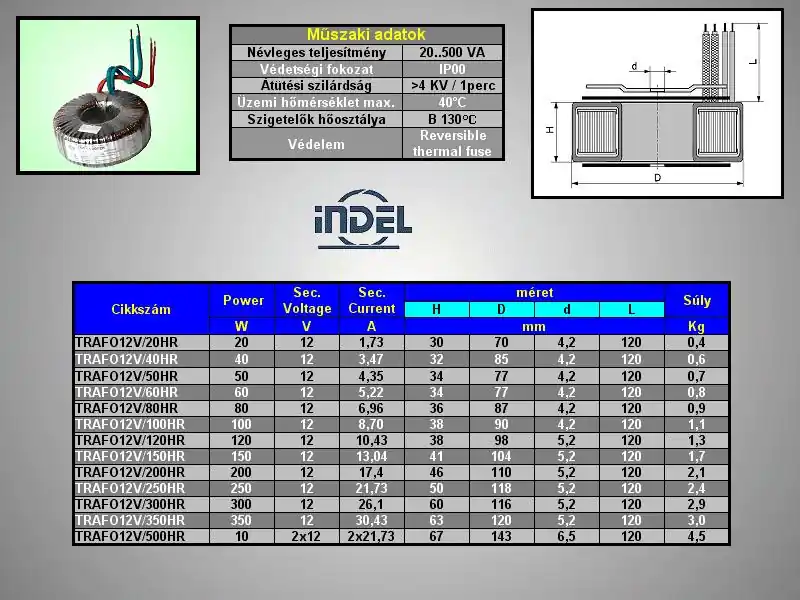 TRAFO 230/11.5V 8,7A 100VA (Visszaálló hővédelemmel)