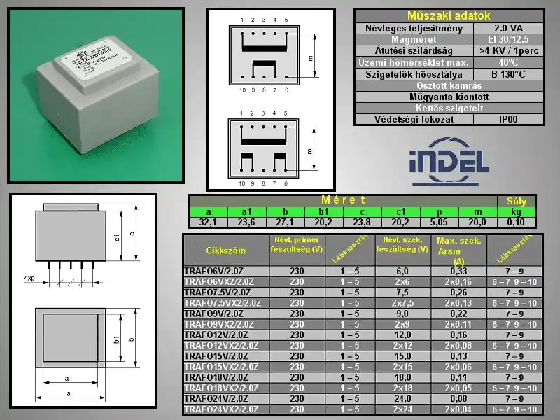 TRAFO 230VAC / 12VAC 0.16A 2.0VA TRAFO12V/2.0Z Autentikus