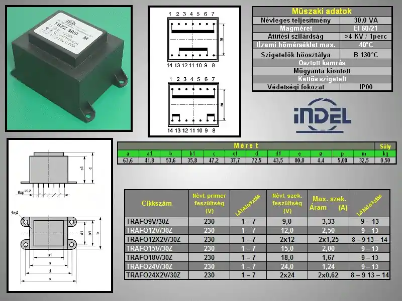 TRAFO 230VAC / 15VAC 2A 30VA TRAFO15V/30Z Prémium mennyiség