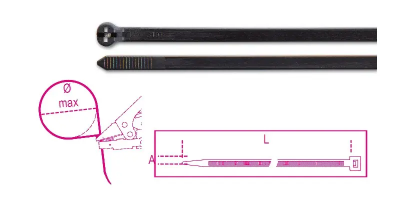 BMNL3748 Acélfogas műanyag kábelkötegelő szalag, fekete, UV-álló – Beta – BMNL3748