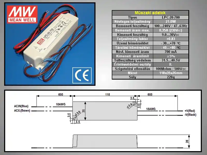 Újdonság LED áramgenerátoros tápegység 20W/700mA P.SUP.LPC20700
