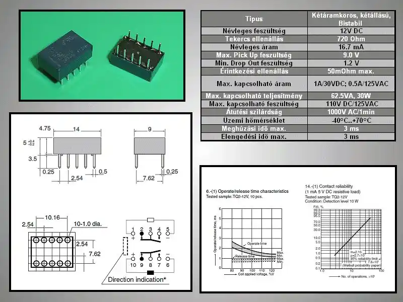 Utolsó esély RELAY 2x30VDC 1A 12VDC Bistabil RELAY-TQ2L2-12V
